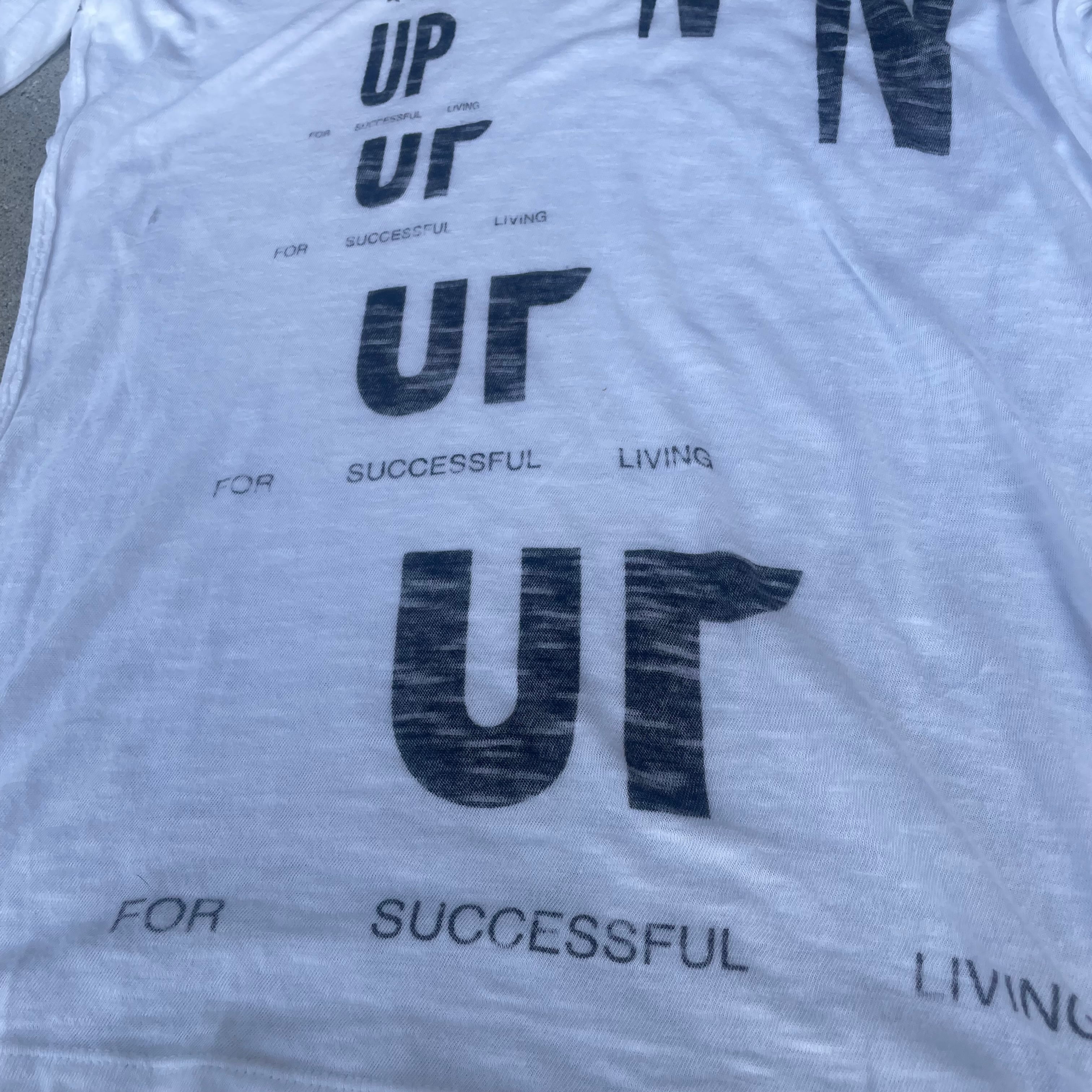 Vネックと遊びのあるプリントはコーデを一味違うモノに