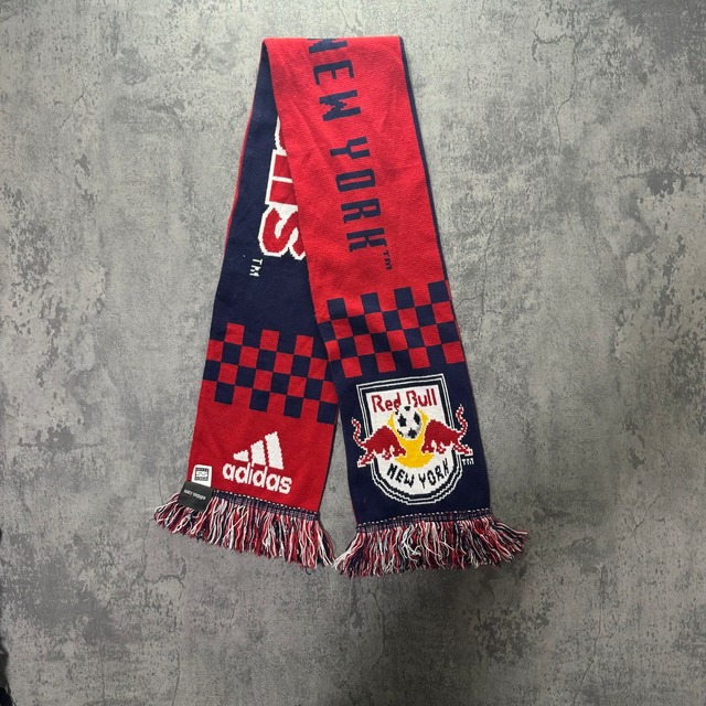 adidas x Red Bull ニューヨークマフラー 大胆なカラーコントラストと目を惹く「Red Bull New York」のロゴで、スポーティでエネルギッシュな雰囲気を演出。サッカーファンやアクティブなライフスタイルを好む方にもおすすめのマフラー。アディダスのアイコニックなロゴがスタイルを一段引き上げます。 サイズ 長さ135cm 太さ18cm